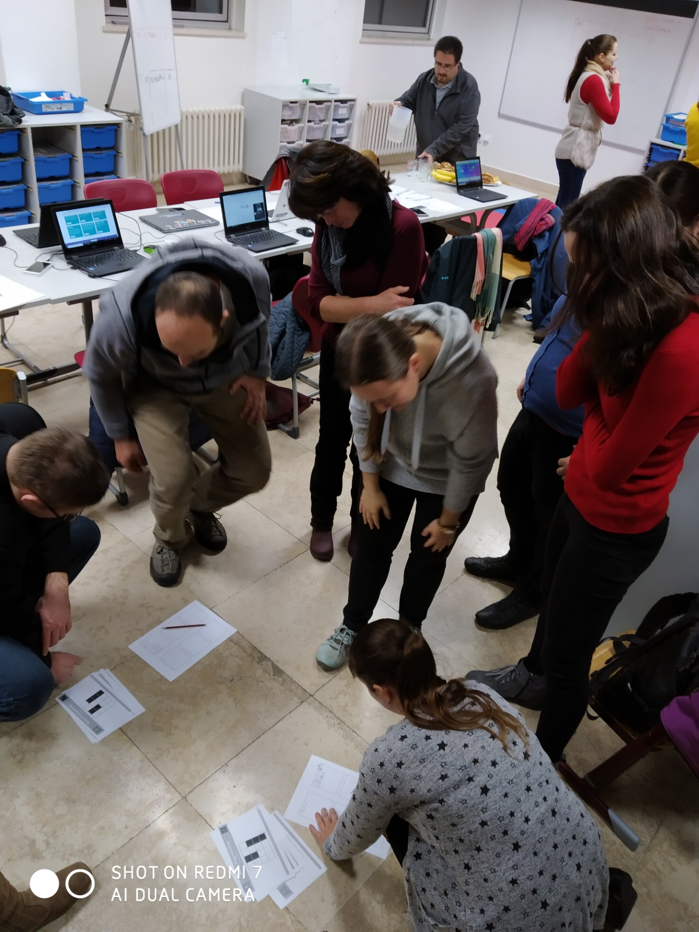 V úvodu setkání jsme si shrnuli některé důvody pro výuku informatického myšlení a rovnou se vrhli do aktivit bez počítače. První aktivitou bylo párové programování, kdy měli účastníci seřadit pořadí obrázků s popisem činností tak, aby postavili vlaštovku. Toto cvičení je vhodné jak pro menší děti (např. žáky 2. třídy), tak v pozměněné variaci také pro dospělejší. Po seřazení obrázků týmy vymění svůj algoritmus s jinou skupinkou, staví podle návodu vlaštovku a diskutují, zda byl postup správný, jak se jim spolupracovalo a zda existuje více řešení. Následuje pracovní list s aktivitami na zopakování hlavních bodů lekce. Pokročilejší verze je navést kolegu pomocí slovních instrukcí bez vizuálního schématu. Druhou aktivitou bylo štafetové programování, kdy se účastníci rozdělili do dvou týmů po 6 a měli za úkol vytvořit algoritmus na vytvoření obrázku na papíře. Tato aktivita je na procvičení týmové komunikace, hledání a opravování chyb (debugging) a práce pod tlakem. Po dvou kolech jsme se skupinkami udělali krátkou reflexi ohledně kritických míst (např. nestanovení způsobu opravy chyb, efektivita kódu).